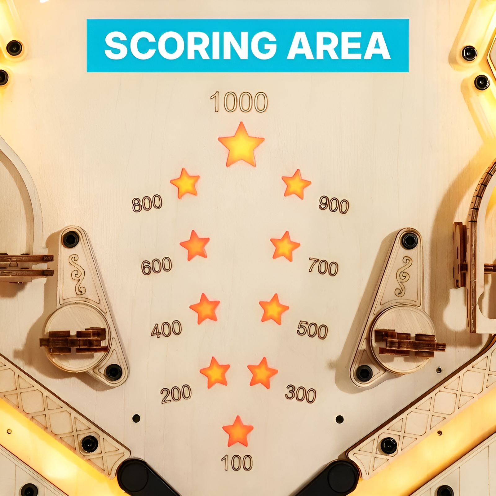 Once assembled, the DIY pinball machine captures the excitement of vintage pinball with ramps, scoring zones, and bouncing mechanics. It is designed for hobbyists, and arcade enthusiasts who enjoy creative projects that provide lasting entertainment.