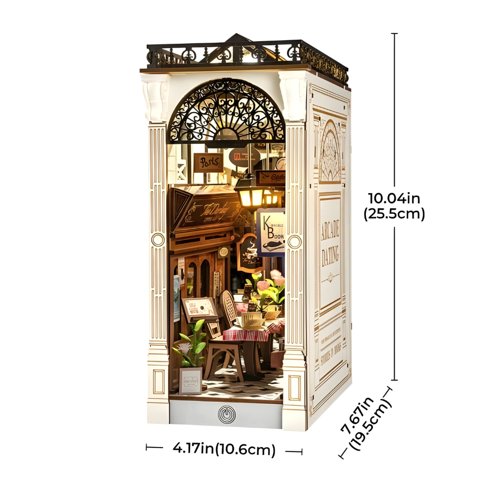 Bring a sense of storytelling into your shelves with the Arcade Dating DIY Book Nook Shelf Insert Kit. This carefully designed miniature set creates a charming street-inspired scene with layered visual elements. Every panel and component is crafted to recreate a realistic environment with balanced lighting, structural details, and depth.
