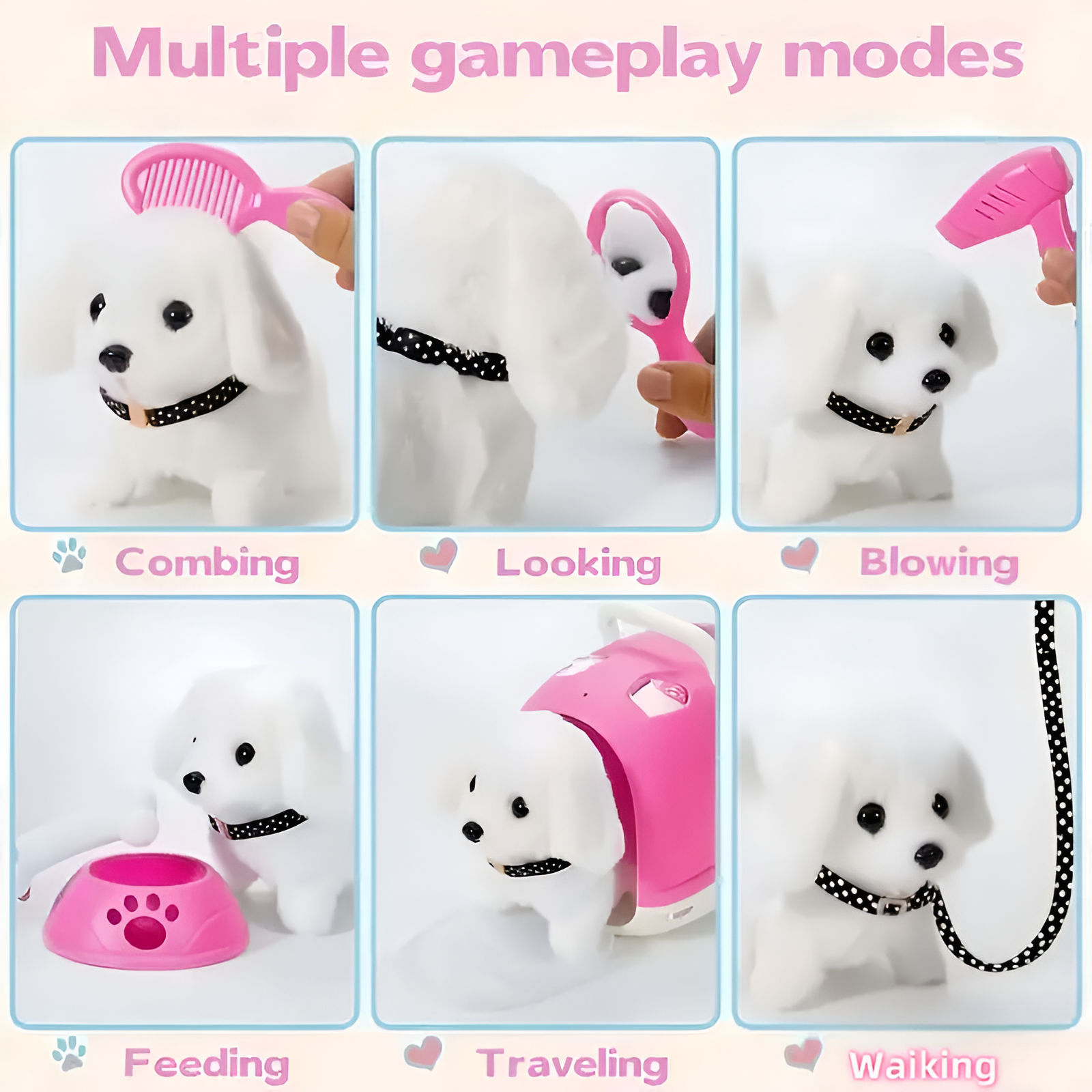 This battery-operated walking Dog Toy For Kids is designed to entertain children with sound and movement. Shaped like a puppy, it features wagging and walking functions triggered by switch activation. This lifelike model encourages indoor activity, imaginative routines, and everyday amusement.