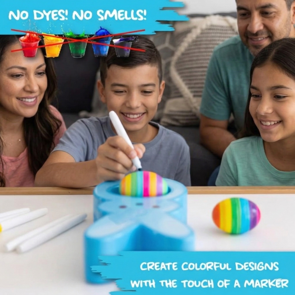 The Bunny Shaped Egg Decorating Art And Craft Kit introduces a creative approach to decorating eggs using a spinning design tool. This art and craft set allows colorful patterns and creative designs to be created quickly without using dyes or traditional coloring methods. The spinner rotates the egg while a marker touches the surface, forming stripes, patterns, and layered color designs in seconds.