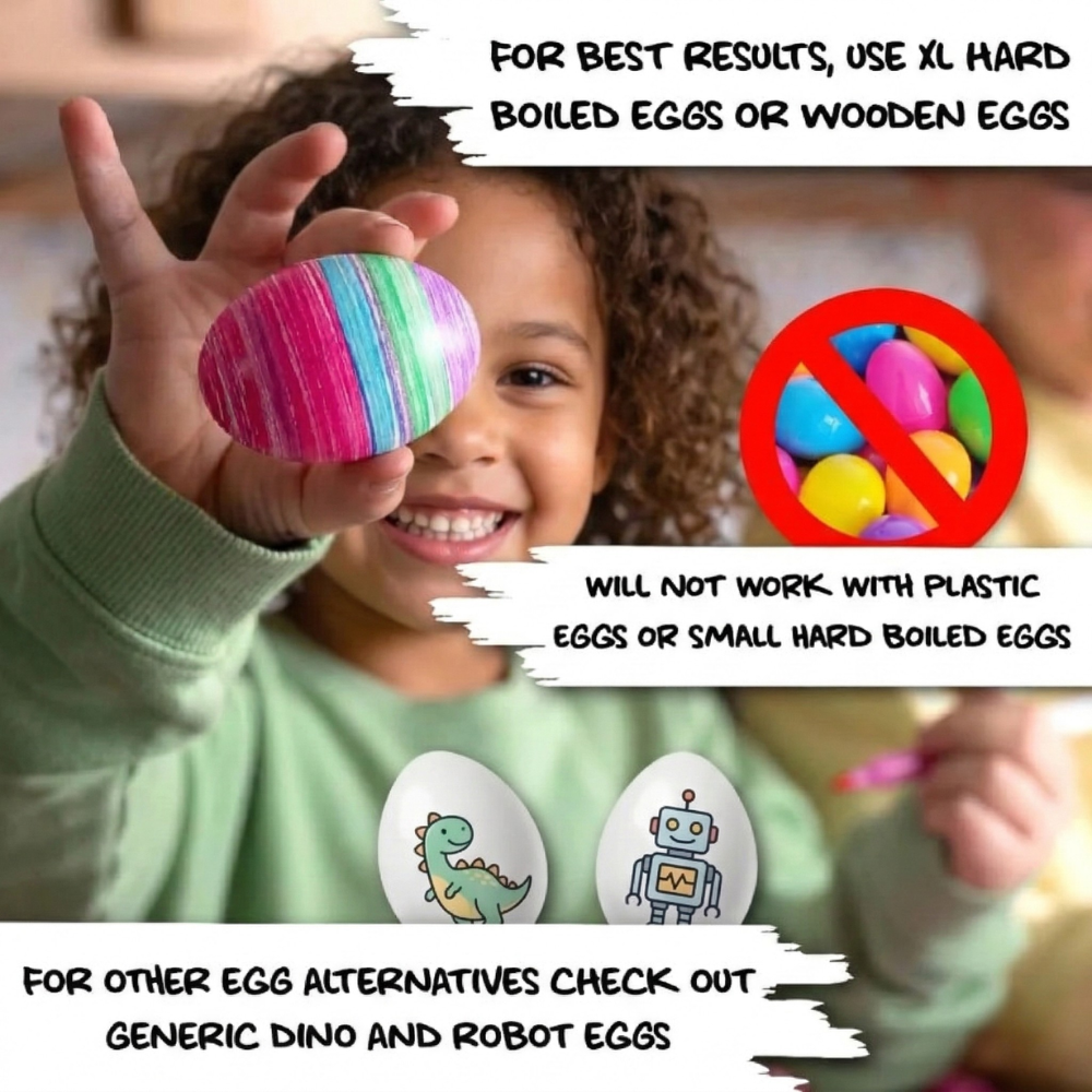 The rotating system allows colorful patterns to be created by simply touching a marker to the spinning egg surface.