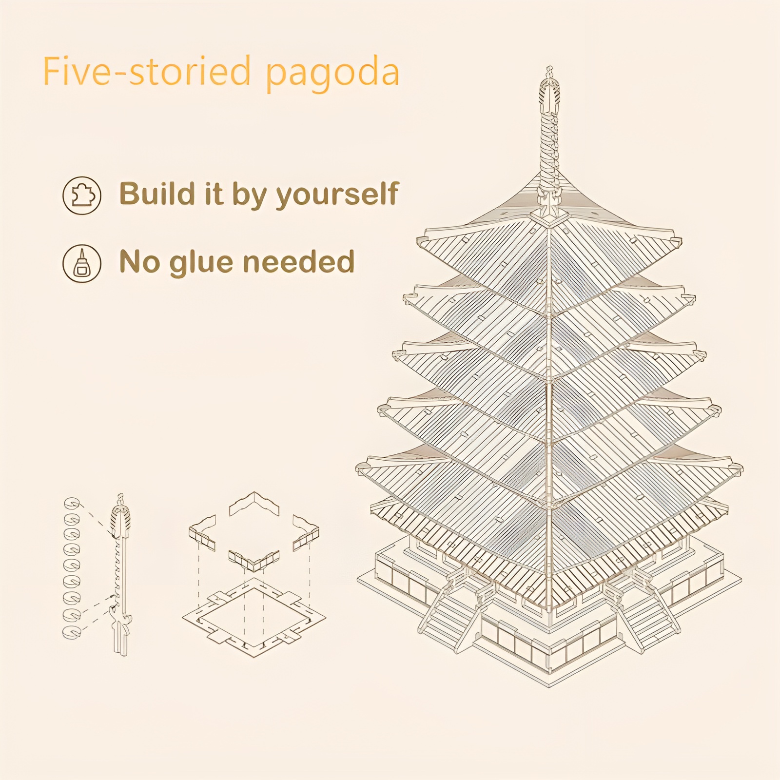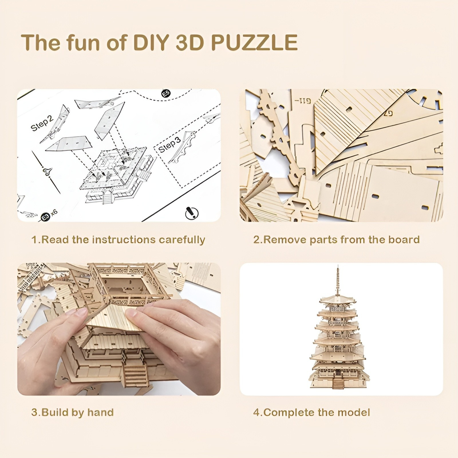 The Five Storied Pagoda Puzzle is a 3D DIY wooden model that blends culture, history, and craftsmanship. With 275 pieces, it provides a rewarding 2.5-hour build, resulting in a detailed miniature inspired by Japanese architectural heritage.