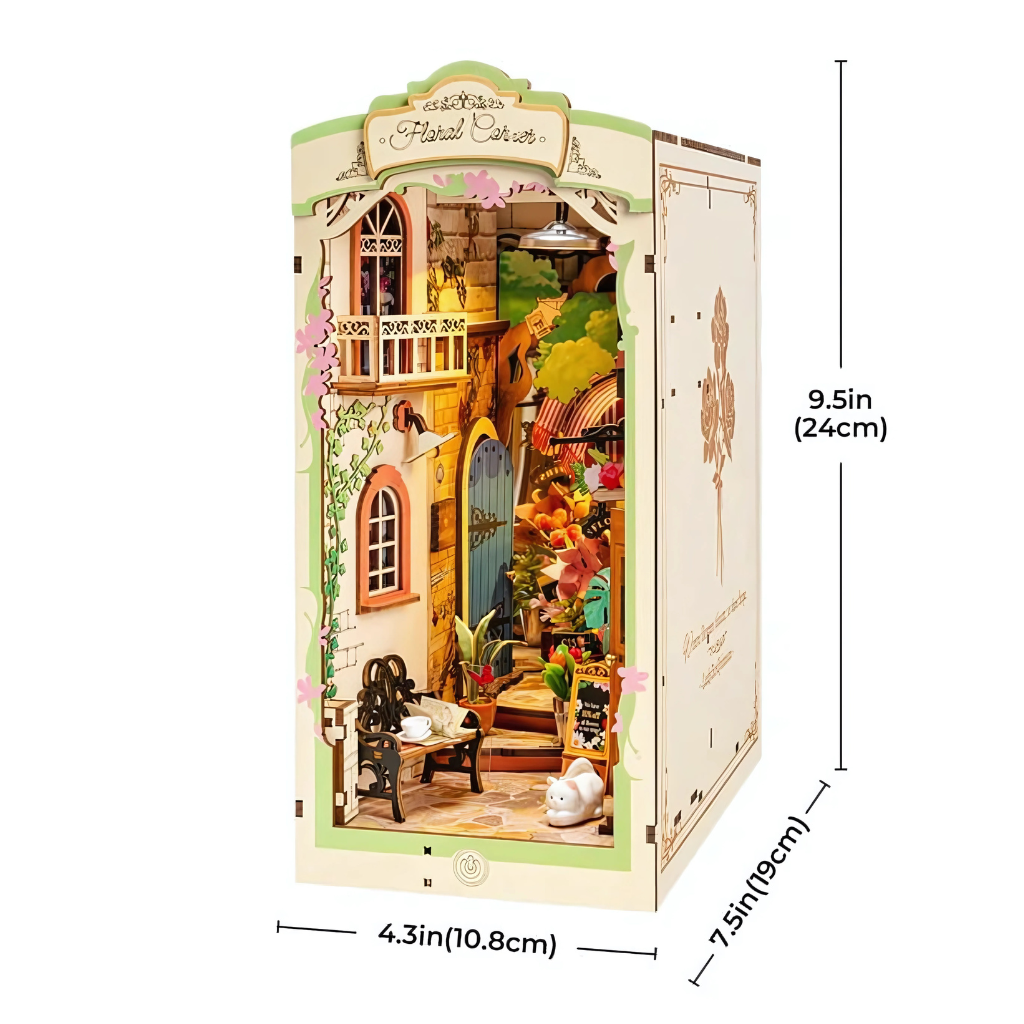Discover an immersive craft experience with the Floral Corner DIY Book Nook Shelf Insert Kit. Designed for those who enjoy miniature displays and creative assembly, this kit allows you to build a detailed book nook from scratch. Once completed, it adds depth and charm to any bookshelf, display case, or workspace.
