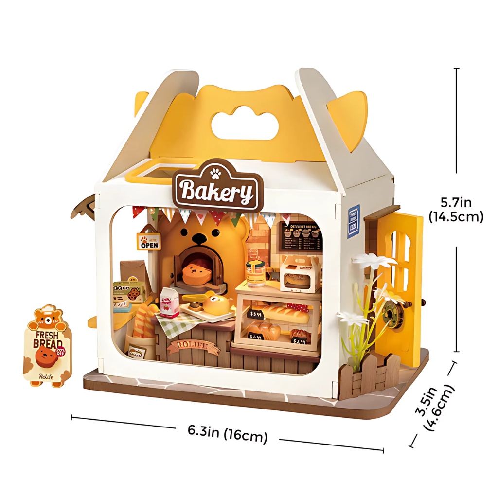 Inside the kit, you’ll find everything needed to build a compact decorative model. From numbered wooden pieces to detailed props, each component is designed to support accurate placement. Whether it’s assembling miniature bakery counters or small display cases, this set provides the tools to recreate scenes that feel visually rich.