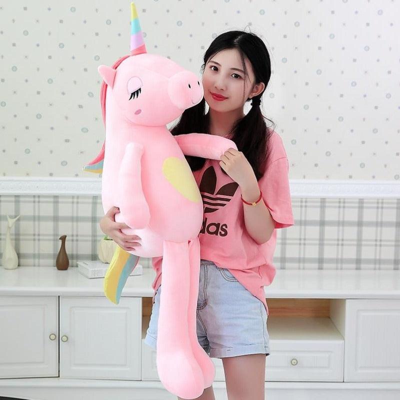 Designed with vibrant rainbow colors and filled with soft PP cotton, it is a cozy and safe. Whether you are searching for a cute unicorn plushie or a soft unicorn cushion, this plush delivers. It comes in a multiple giant sizes for the perfect snuggle.