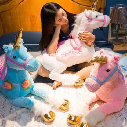 The Huge Unicorn Plush Toy is a cozy and charming companion. It offers comfort and playful design for children and adults alike. This plush unicorn is perfect, for snuggling and decorating any room. Available in White, Pink, and Blue, it adds beauty to your space.