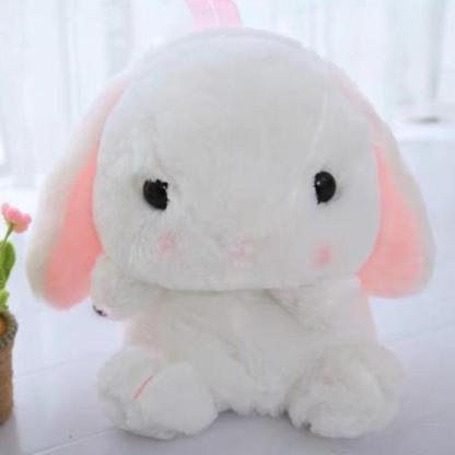 Featuring large round eyes, stitched pink blush patches, and ultra-long drooping ears, this rabbit backpack takes a minimalistic and expressive design approach. The all-white body contrasts softly with subtle pink inner-ear accents and paw lines.