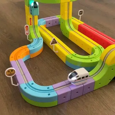 The magnetic electric train brings every track to life. Its USB-rechargeable design keeps play going without constant battery replacements. Once placed on the completed track, the train glides through the path, showcasing how slopes, curves, and turns influence movement.