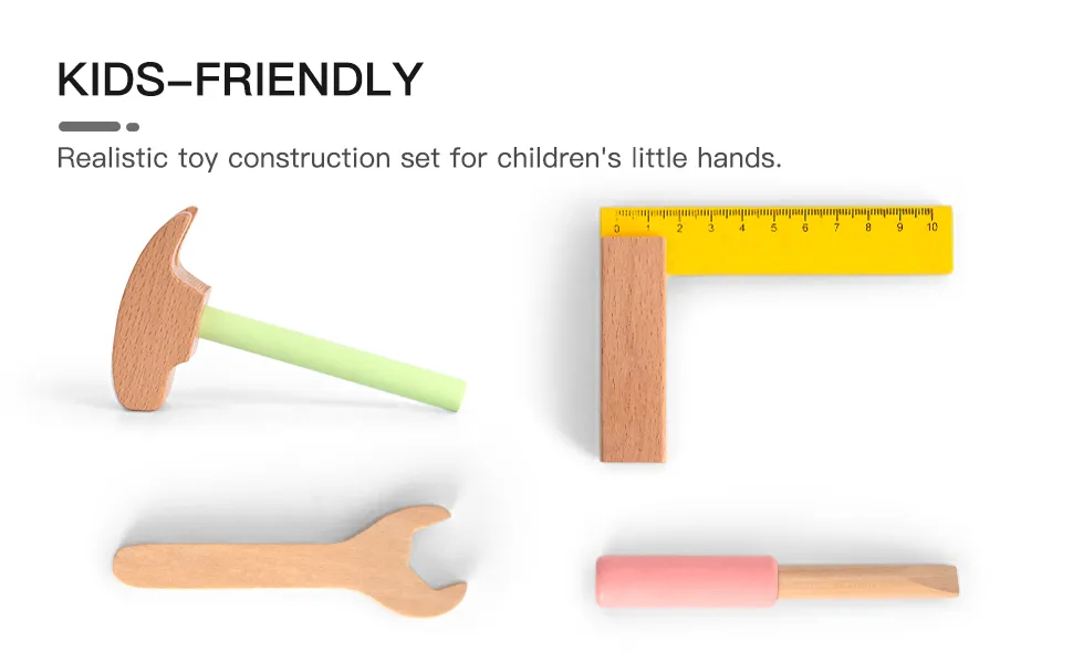 - Creativity: Inspires imaginative construction play with realistic wooden tools.