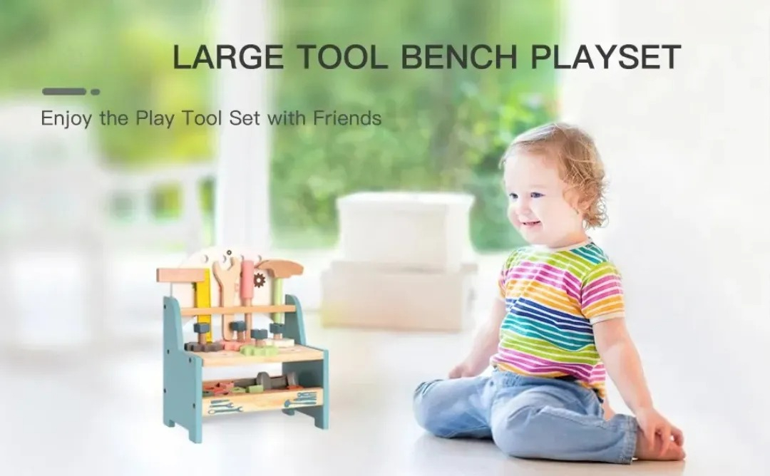 This wooden play tool set encourages children to experiment, pretend, and build projects, making it an excellent gift for toddlers and preschoolers. With easy assembly, smooth edges, and multiple storage areas, it delivers both safety and enjoyment in one versatile toy.