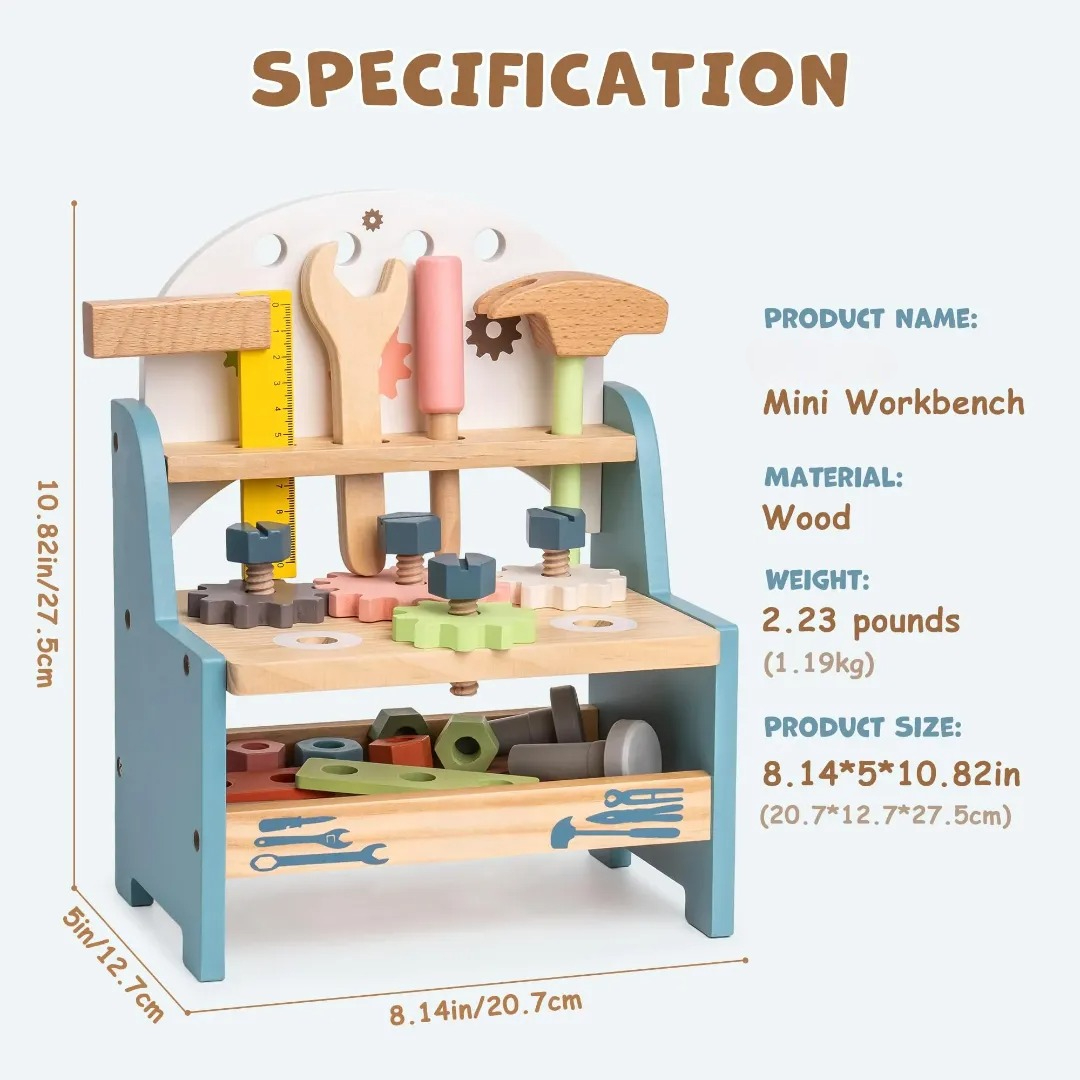 The mini wooden tool workbench is an engaging, compact play set that encourages creativity, teamwork, and early education. With its safe construction, bright colors, and realistic tool design, it makes a wonderful addition to any toddler’s playtime routine.