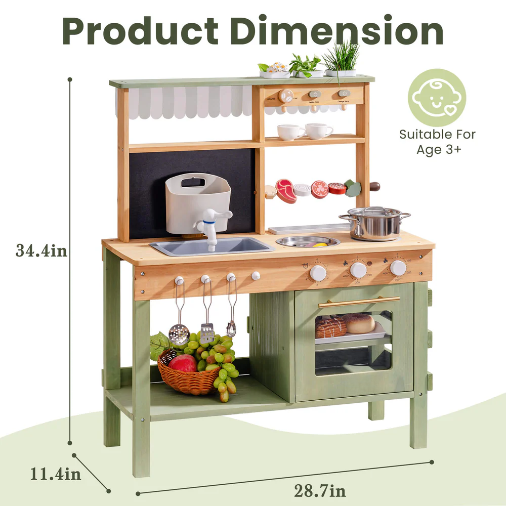 Unlike electronic toys, this play kitchen promotes active outdoor fun and meaningful social interaction. Parents and educators can rely on its luxury wood construction and certified safety standards, giving confidence in its quality.