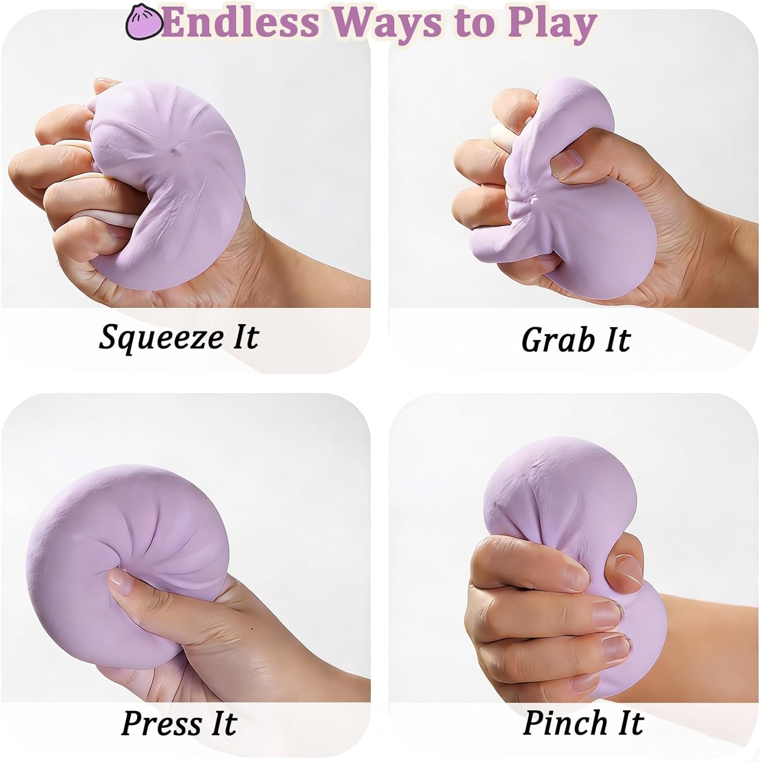 The Jumbo Dumpling Squishy Toy is crafted from soft, slow-rebound foam. The material is lightweight and compressible. After each squeeze, it rises gradually without cracking or losing form.