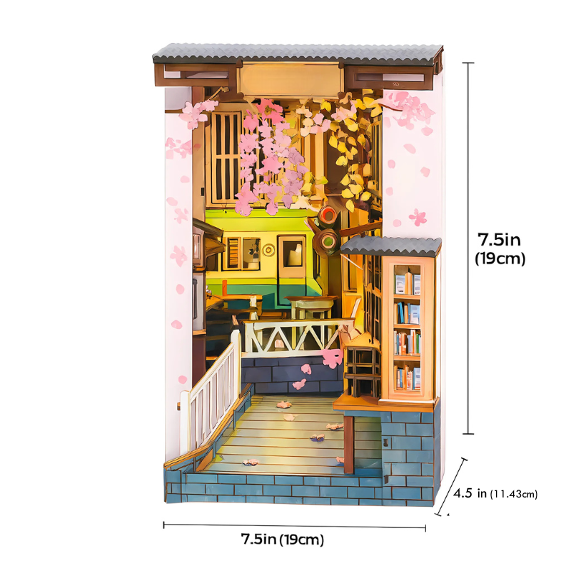 Bring the fleeting beauty of cherry blossoms and the serenity of a Tokyo tram scene into your home with the Sakura Densya Book Nook Kit. This exquisitely detailed DIY book nook kit recreates a tranquil April moment where petals fall gently as a tram glides past a riverside bookstore. Meticulously crafted from laser-cut plywood, reinforced with frost acrylic, and accented with layered lighting, it’s an immersive display piece and a mindful craft project combined.