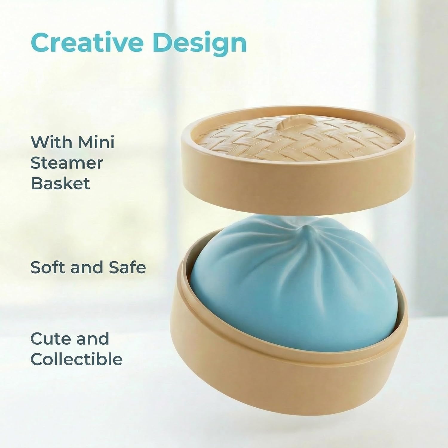 Each dumpling maintains its rounded structure after squeezing. The TPR material provides elasticity while supporting gradual rebound motion. The included steamer containers keep each dumpling organized and enhance visual presentation when displayed.