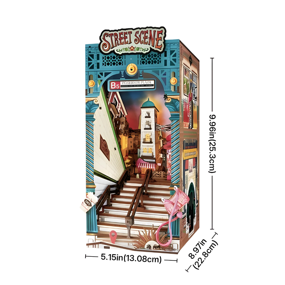 The Street Scene Book Nook turns a bookshelf into a captivating urban miniature. With layered construction, lighting control, and creative assembly, it enhances any display area.