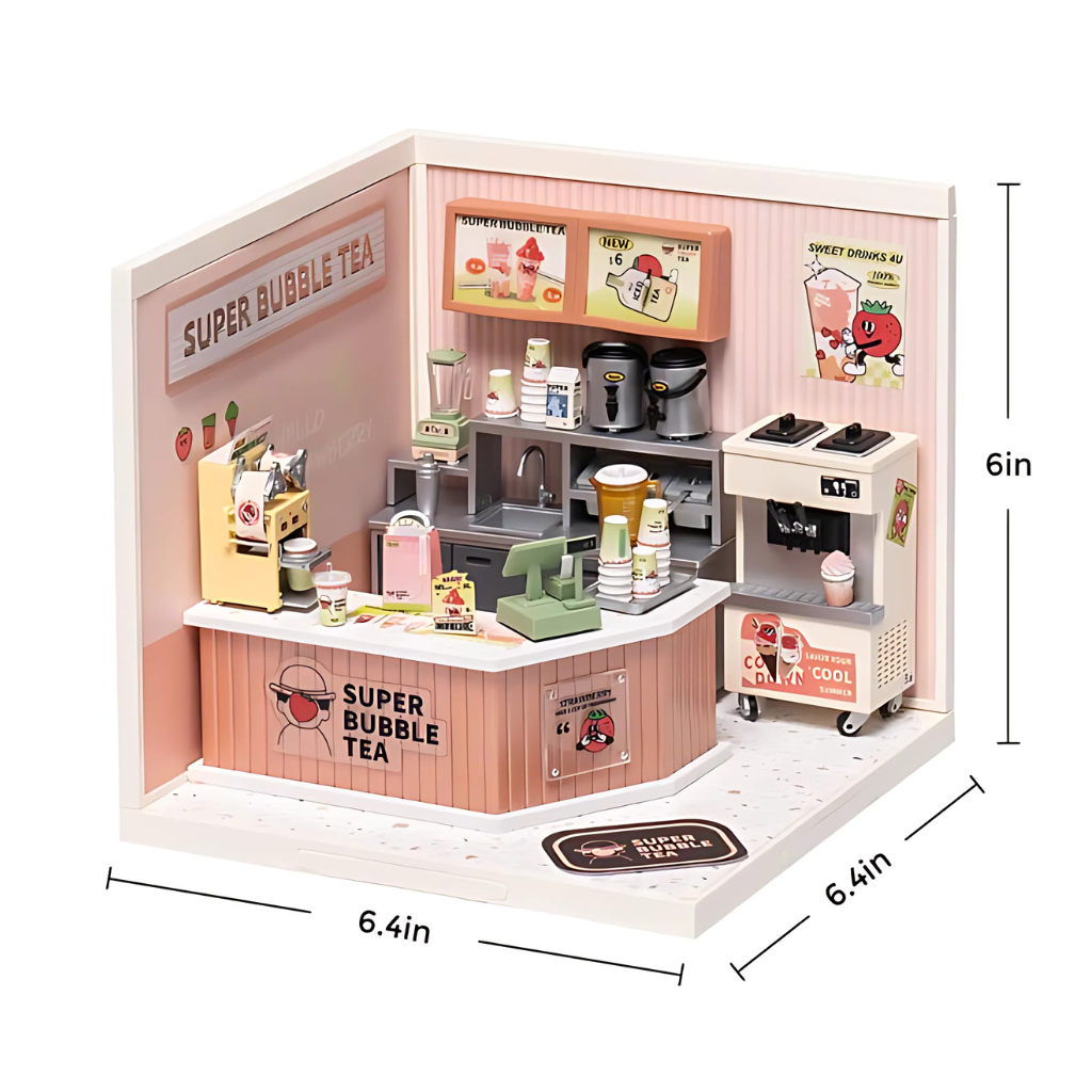 Introducing the Bubble Tea Miniature Kit, a creative DIY Miniature House project that lets you build your very own miniature bubble tea shop. This detailed kit captures the vibrant and cozy atmosphere of a bubble tea café, perfect for hobbyists, collectors, and craft enthusiasts. Featuring precise pre-cut parts and easy-to-follow instructions, it delivers hours of fun and a rewarding building experience. The integrated LED Lighting Miniature system adds a warm, inviting glow, bringing your tiny shop to life. Whether for your own collection or as a thoughtful gift, this Kit offers a unparalleled decorative element filled with charm and personality.