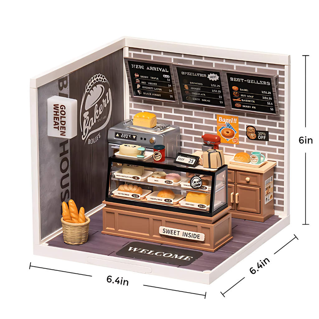 This DIY Miniature House kit focuses on interactive design. From storage drawers to decorative items, every feature is carefully crafted to match a bakery setting. It includes removable desserts, shelves, and small details to personalize your creation.