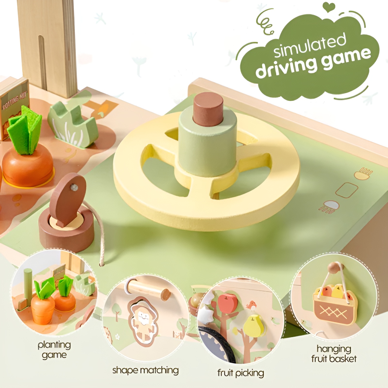 - Activities: Gear play, animal sliders, planting simulation.
