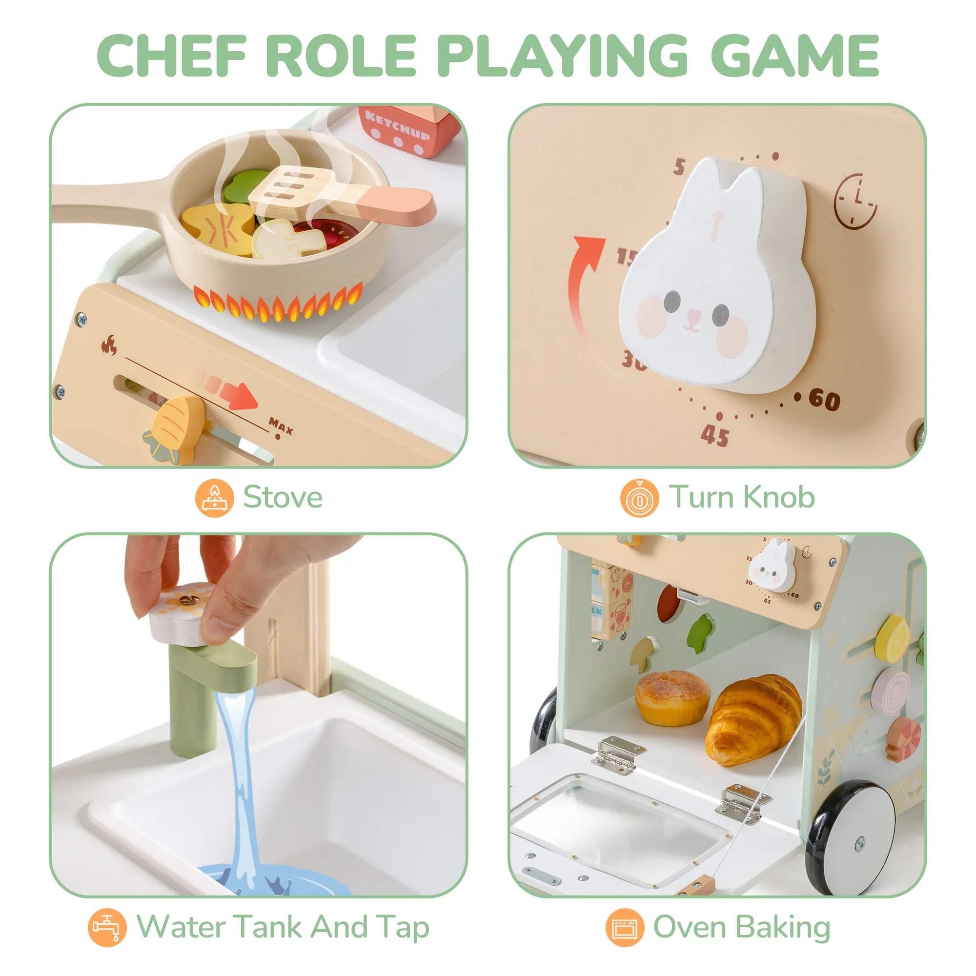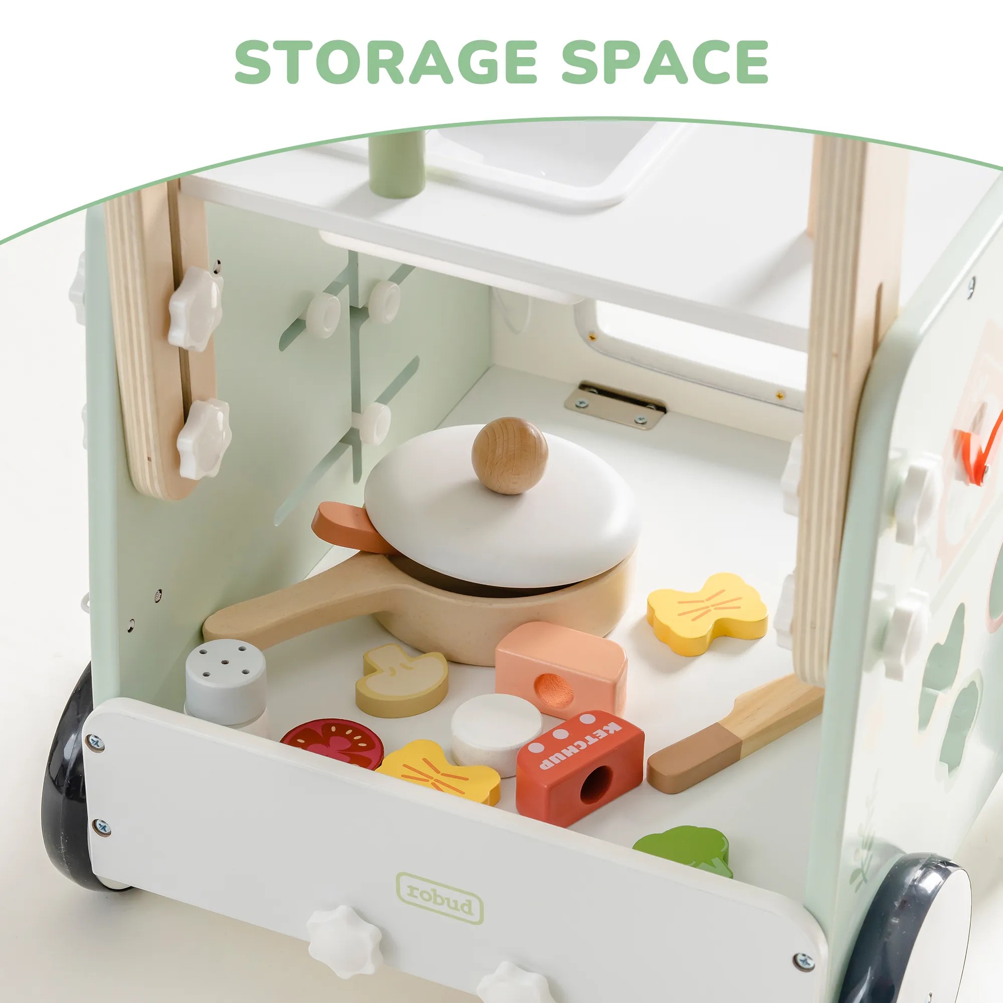 - Montessori Activities: Includes shape matching, salad sliders, and pretend cooking to stimulate early learning.