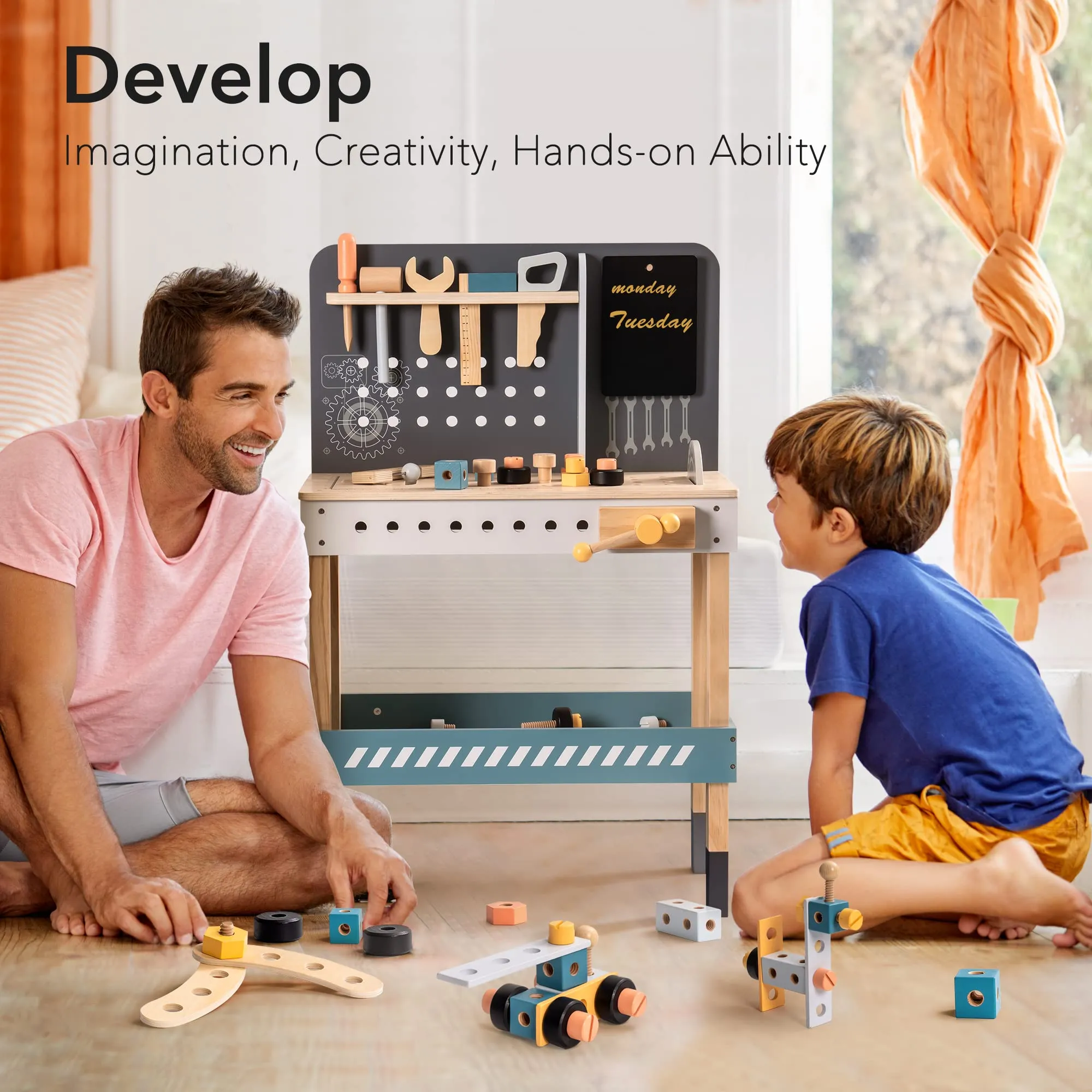 Parents can join in the fun, turning playtime into a bonding experience. With realistic tools and project ideas, this educational play workbench helps children develop patience, focus, and creativity while discovering the joy of building something from start to finish.